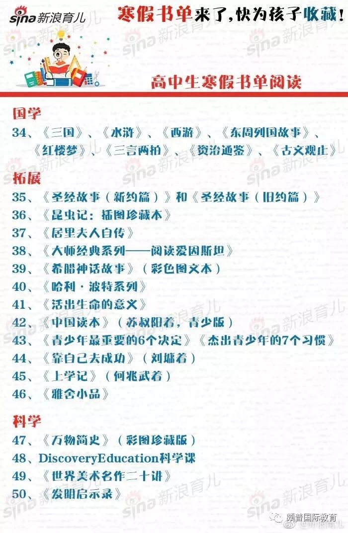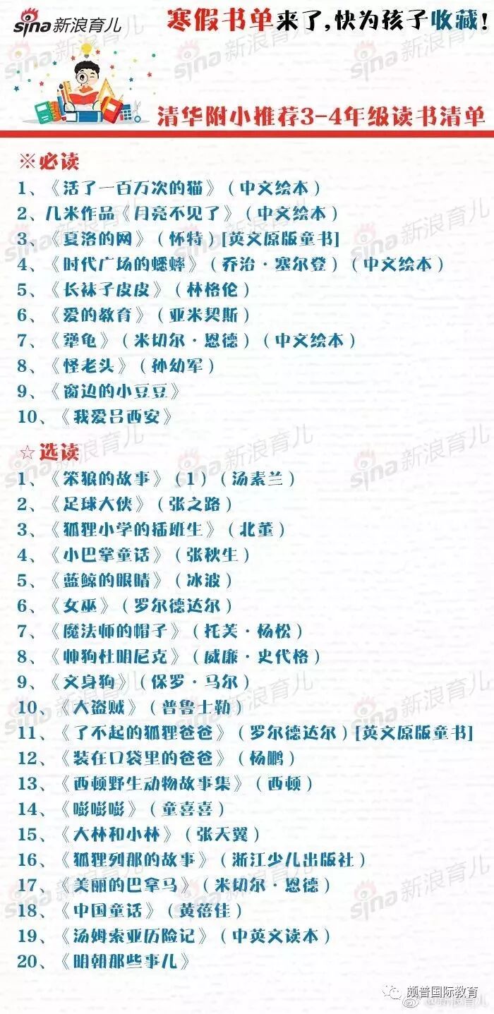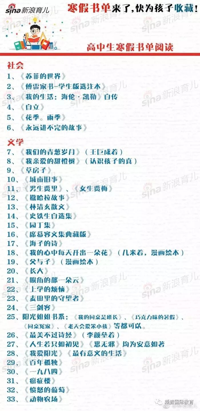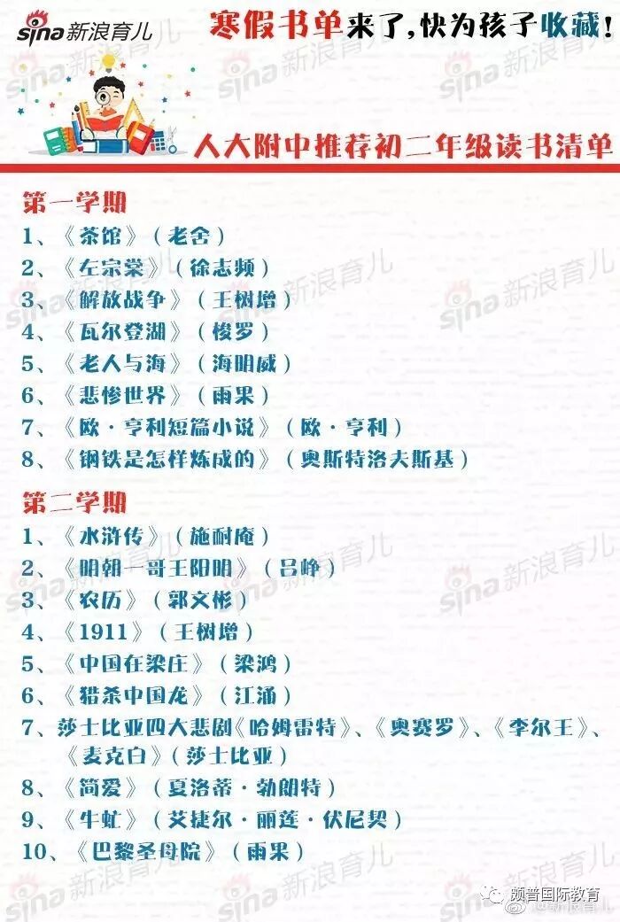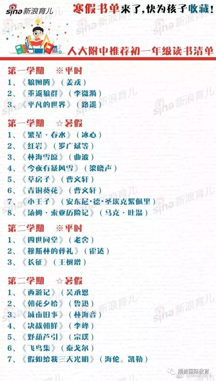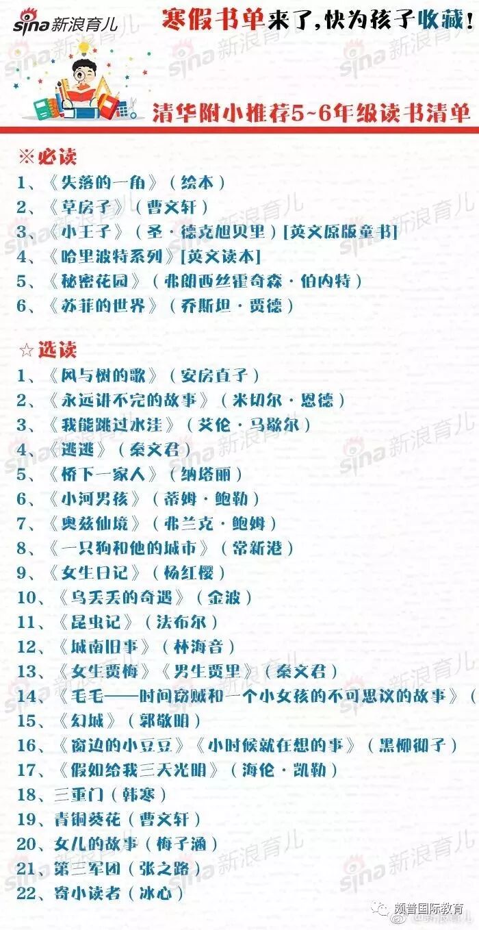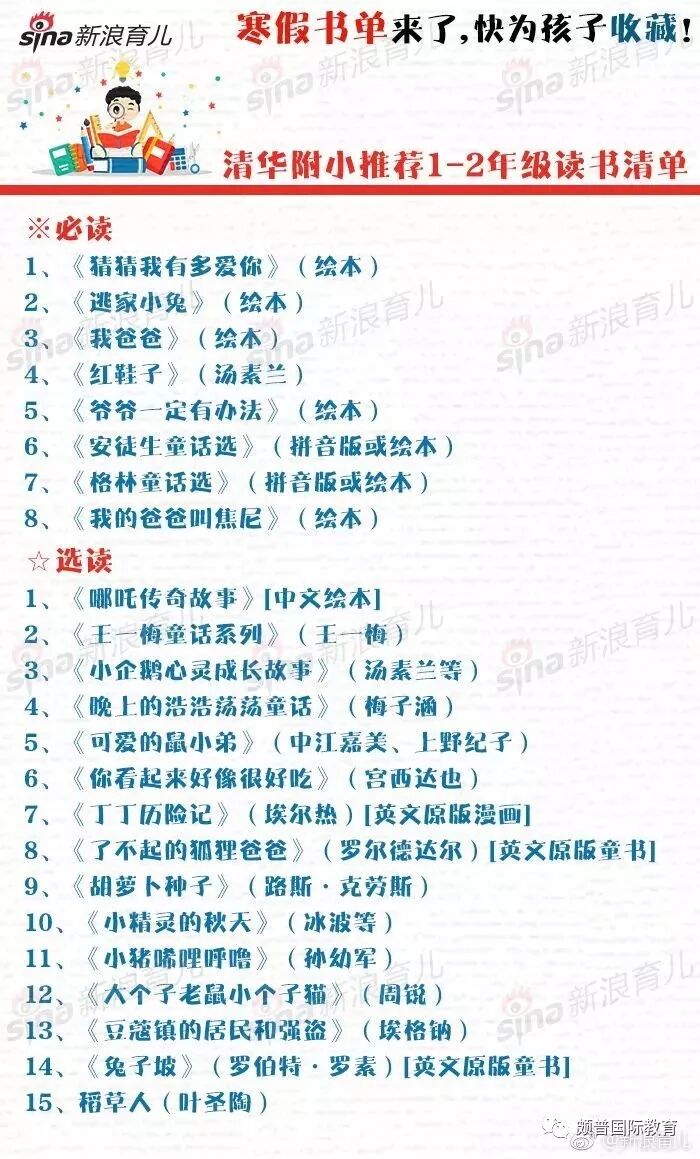 利用宝贵的寒假,让孩子多读几本好书,不仅能培养阅读兴趣,增长知识,陶冶精神,而且有利于写作能力的提高。从小学到高中,全国顶尖中小学的老师对阅读书目做了倾情推荐,老师快转发给家长和孩子吧!