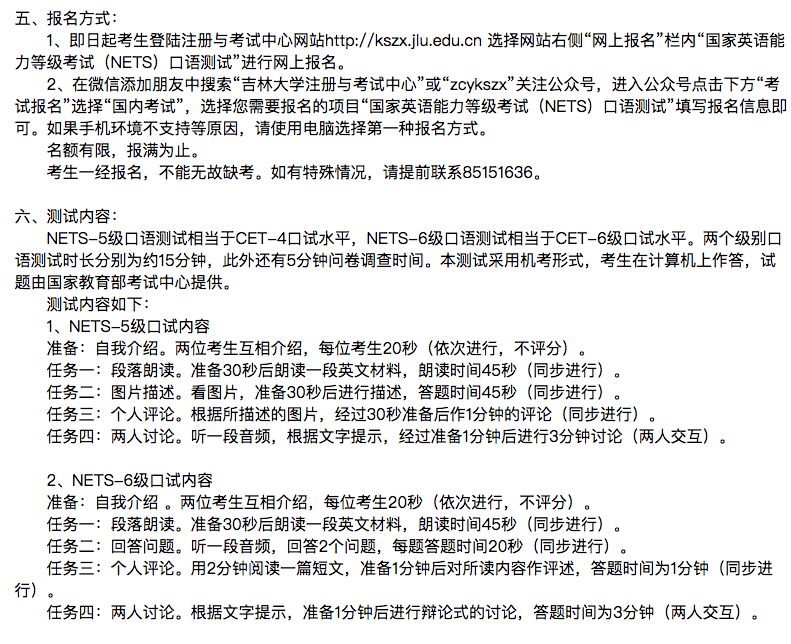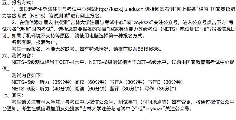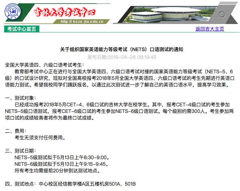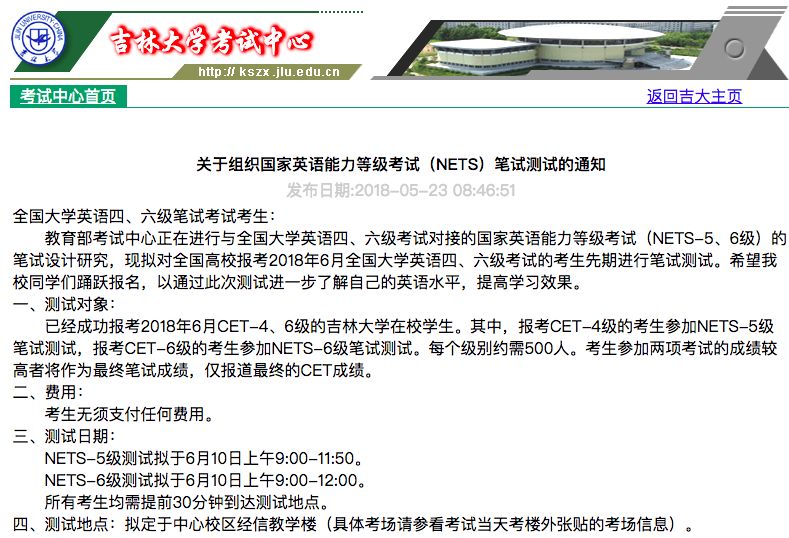 比如,此前吉林大学考试中心发布《关于组织国家英语能力等级考试(NETS)笔试测试的通知》。该《通知》部分内容如下: