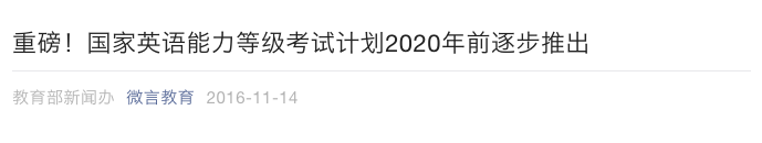 此前消息:国家英语能力等级考试计划2020年前逐步推出